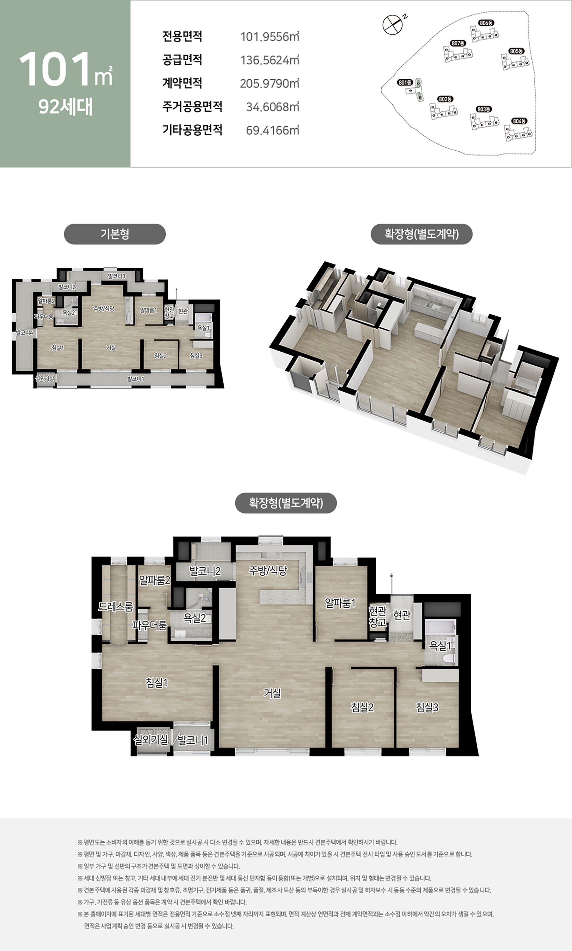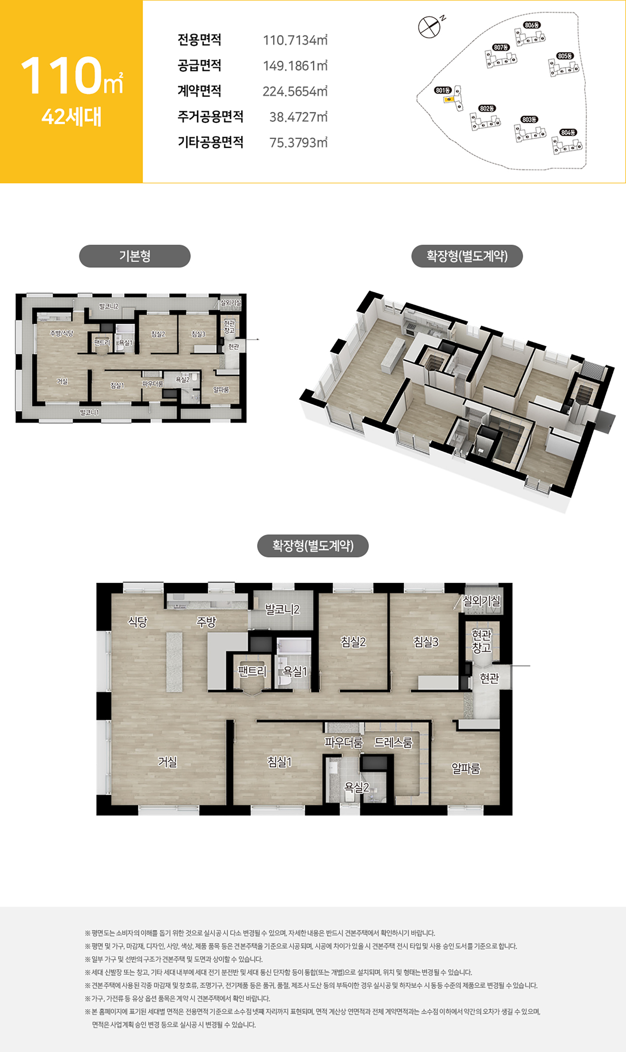 총 1,349세대 中 대형평형 → 101㎡ : 92세대 (6.8%) / 110㎡ : 42세대 (3.1%)
